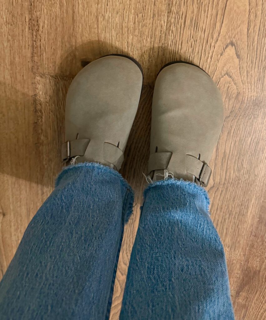 These cutie clogs. I’d been seeing the Birkenstock ones around for a while but didn’t know if I could pull them off since I wore that exact same shoe in 5th grade. I remembered how comfy they were and the fact that they matched any jeans outfit, so I bought a cheaper pair at Target. Liv was instantly obsessed with them, so I ordered a pair for her, too.