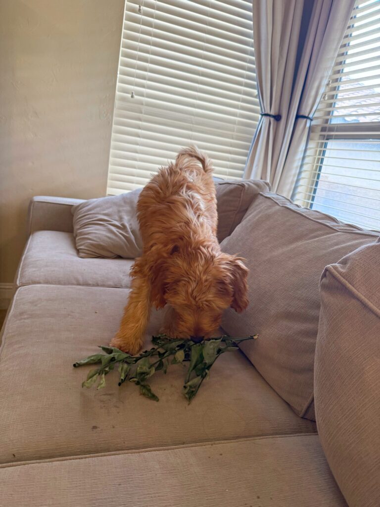 May you be as content as Lola with a crunchy tree branch she brought inside to eat on the couch.