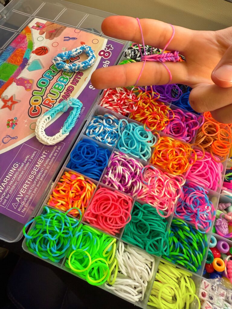 This bracelet kit. Usually when we’re on planes, all screen time rules go out the window for the kids. I’m always happily surprised when they pick non-screen activities (like reading a paper book). P made bracelets almost all the way to Orlando.