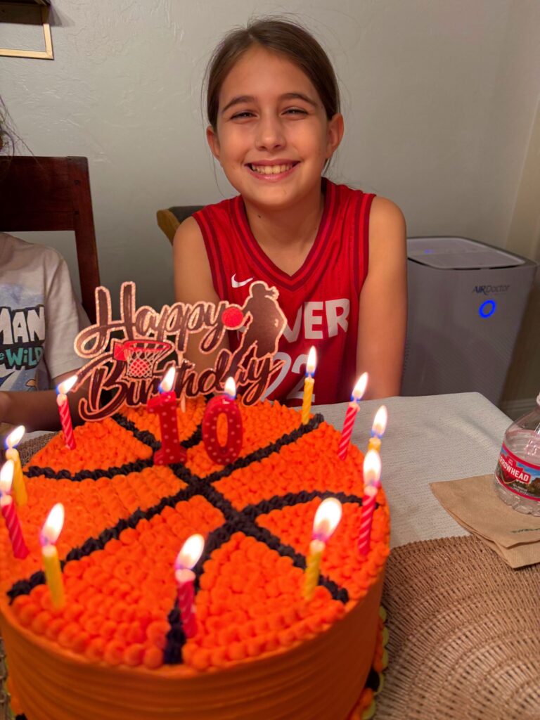 We celebrated in the morning with a party for her friends at Jumping Cholla trampoline park, and then in the evening, we celebrated with cake and Hawaiian Bros here with the fam. The Pilot was on a trip, so we Facetimed him for, “Happy Birthday.”