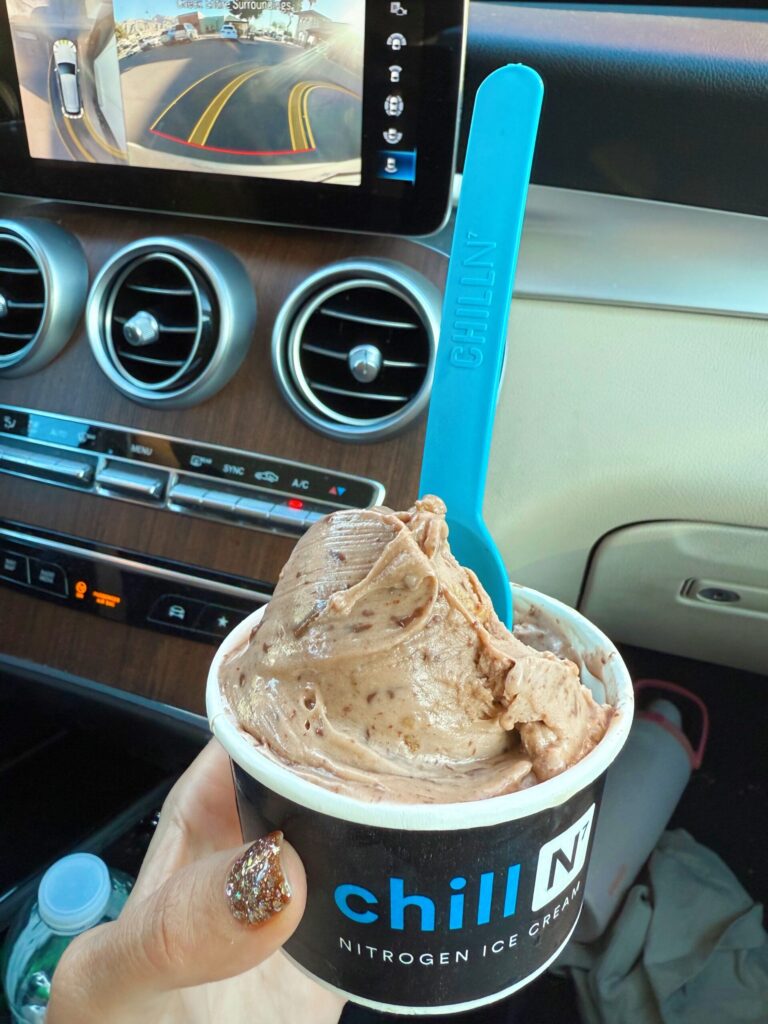 (my go-to is Nutella almond milk ice cream with Reese’s)