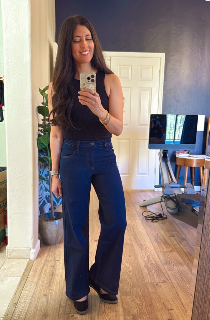 Jeans from Ruti! They sent me a pair of their Palazzo pants to try and they fit so well (I’m in a size 4 petite) and the fabric is a dream. They’re definitely on the splurge-y side, but I can totally see the hype. I need to figure out how to style them (I’ll prob just wear with a tank and Sambas) but here is the link!