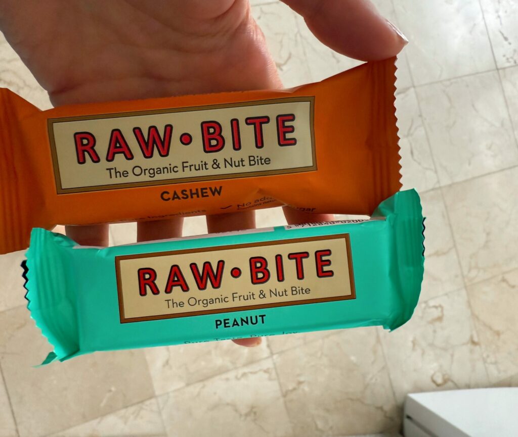 (Just dried fruits and nuts. Similar to the Nakd bars but a little larger and different texture.)