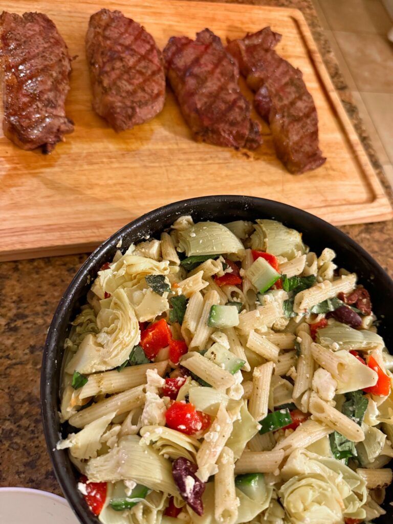 Pasta salad and steak night!