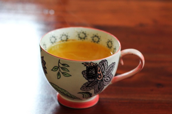 This morning drink is warming and cozy with lemon and turmeric; one of my favorite ways to start the day.